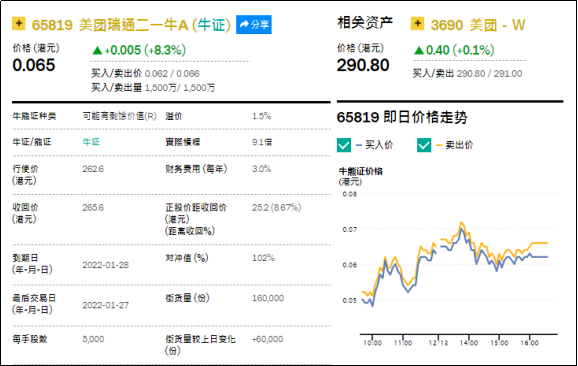 1、强势轮证:美团瑞通二—牛A(65819.HK),上周五上涨8.3%;