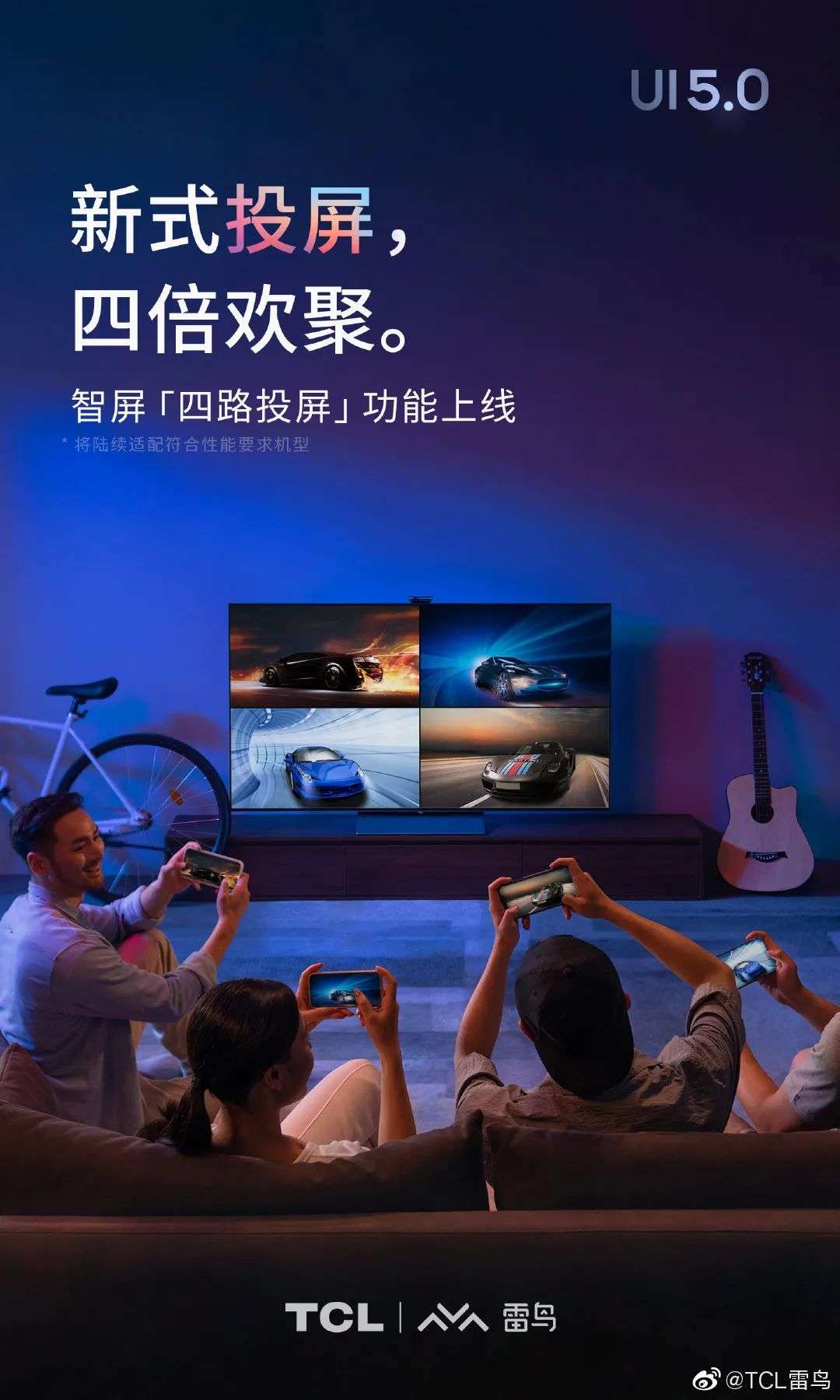 现如今,聚会开黑已经成为年轻人的主流娱乐方式。单个的手机屏幕又无法满足其他朋友观赏开黑时的精彩画面,为了进一步强化客厅开黑的体验,TCL旗下的雷鸟科技在自家智屏产品上推出了“四路投屏”功能,最多支持4个用户共享同一块屏幕。