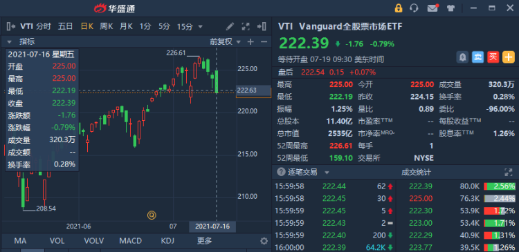 Vanguard Total Stock Market ETF帮助资金流入激增,年初至今有213亿美元的新资金流入。在收益方面,VTI 年初至今涨幅为+15.57%,一年内为+39.45%。VTI是Vanguards最大的ETF,为投资者提供了投资整个市场的机会,而不仅仅是标准普尔500指数的大盘股。