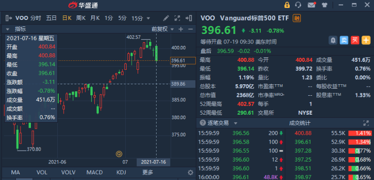 Vanguard S&P 500ETF是今年资金流入量的最多的ETF,年初至今的流入量为286.4亿美元,占整个行业总流入量的5.86%。 从收益的角度来看,VOO年初至今涨幅为+16.68%,一年内为+36.85%。VOO也以0.03%的手续费用率进入市场。