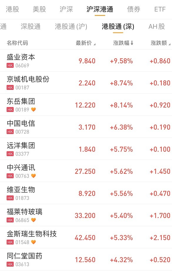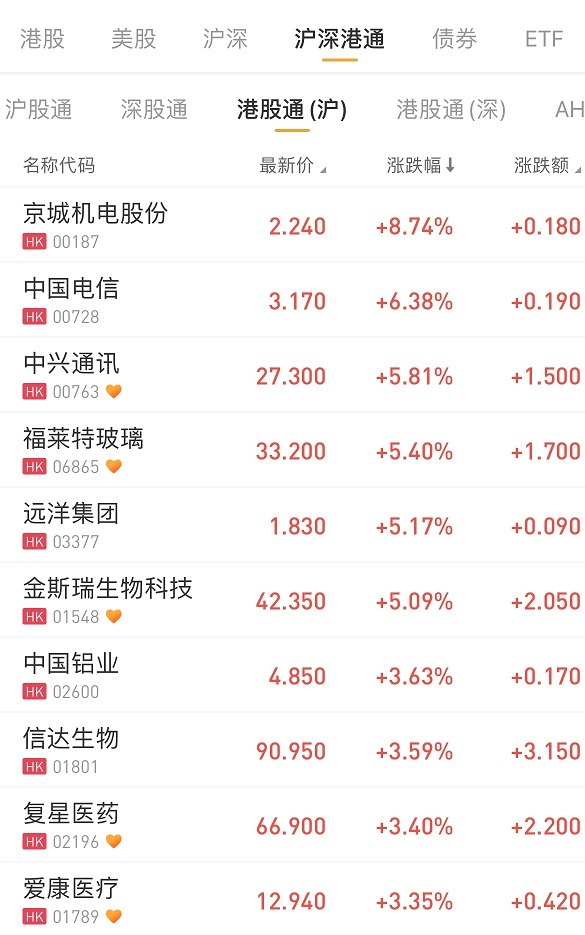 沪深两市成交金额连续第13个交易日突破万亿。截止发稿,上证指数跌0.06%;深证成指涨0.03%;创业板指涨0.28%。港股通(沪)、港股通(深)个股方面,东岳集团涨8.14%,中国电信涨6.38%,中兴通讯涨5.81%;福莱特玻璃涨5.40%。