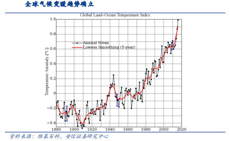 全球气温指数 来源:维基百科、安信证券