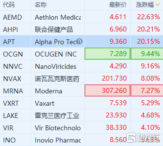 格隆汇7月20日丨美股抗疫概念股扩大涨幅,联合保健产品、Alpha Pro Tech Ltd涨20%,诺瓦瓦克斯医药涨8%、Moderna涨7.27%。消息面上,英国、法国、美国、东南亚国家疫情出现反弹。世卫组织指,疫情远未结束,仍然是全球性挑战,疫苗供应有限的国家正在经历新一拨感染。此外,很有可能出现更危险的变异株,且有可能更难控制。