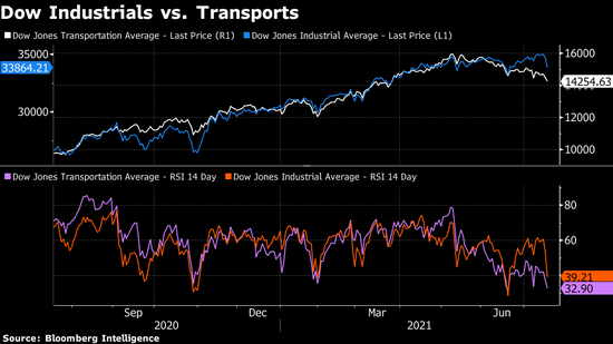 道琼斯运输指数确认了来自大宗商品价格和利润的信号,即经济增长将在今夏触顶,未来几周股市需要适应较长期内增长放缓的状况。道琼斯工业指数和道琼斯运输指数的分化一直持续到上周,运输板块持续下行近期内对工业股来说是个坏兆头。