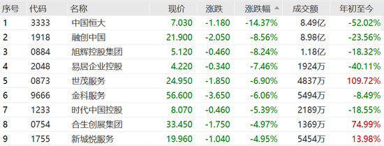受恒大风波影响,地产股集体大跌,其中,中国恒大大跌14%,旭辉控股、融创中国跌超8%,易居企业控股等跌超7%,世茂、建业地产、时代中国等跌5%。
