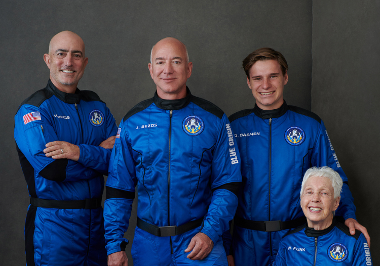 本次旅行成员包含4人,杰夫·贝佐斯、他的弟弟马克·贝佐斯(Mark Bezos)、82岁的女飞行员沃利·芬克(Wally Funk)和荷兰18岁少年奥利弗·达曼(Oliver Daeman)。