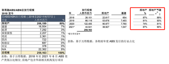 ABS 是联易融最核心的业务,其收入和规模占比超过90%。但它没有披露的是,这实际上也是它融资金额最高、风险最大的业务。公司有意隐瞒了一个事实,即其 ABS 业务绝大部分来自于房地产领域。