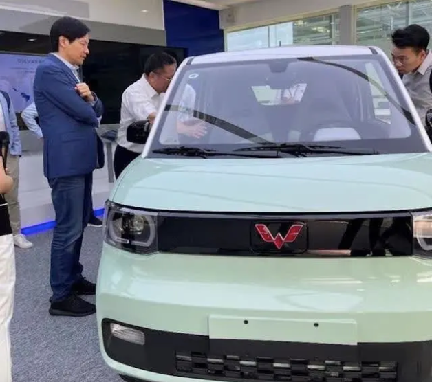 ▲雷军观看上汽通用五菱宏光MINI EV(图片源自网络)