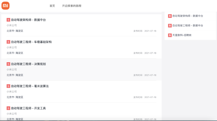 就在7月14日,小米集团又将自动驾驶方面的招聘提升到了25项。