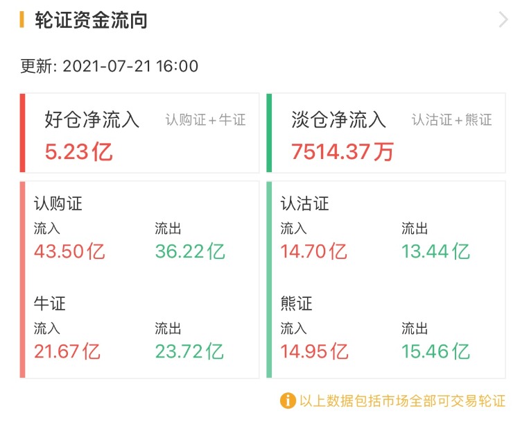 其中,窝轮总成交110.81亿港元,牛熊证总成交82.21亿港元。