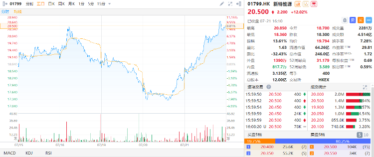 作为港股市场上光伏概念股,新特能源股价表现极为强劲,今年以来累计涨幅超85%。