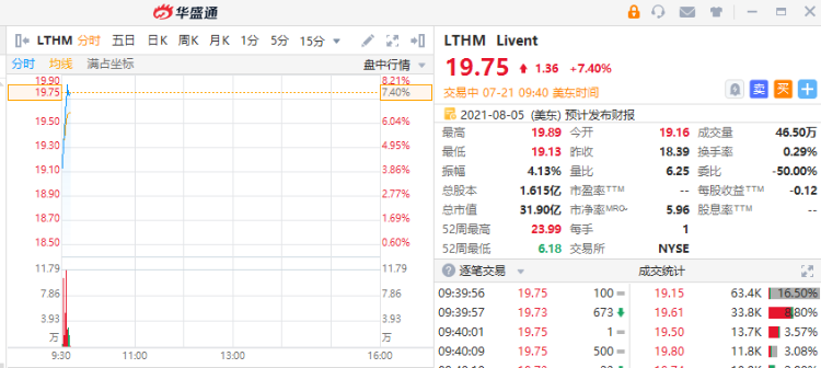 华盛资讯7月21日讯,今日美股开盘后,美股锂电池板块走强。