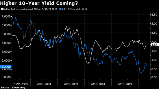 达拉斯联储的一年期个人消费支出价格指数(PCE)均值和10年期美债收益率的相关性非常紧密。核心通胀指标指向更高的收益率。鉴于PCE升高且还有上行空间, 周三收益率的反弹很可能会继续。
