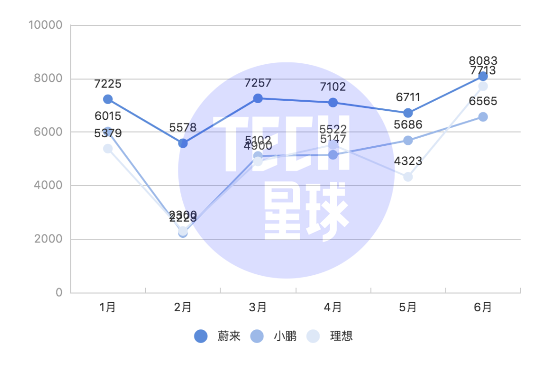 其中,蔚来卖得最好,今年1-6月累计交付量为41956台,已超去年全年交付量的95%,理想经历了短暂的销量低谷后,6月销量飙升至中型SUV第一,半年交付30154台,也超过去年。小鹏也在赶上,月度、季度及半年度累计交付量均创历史新高,半年累计交付30738台,已经超过上年全年数。