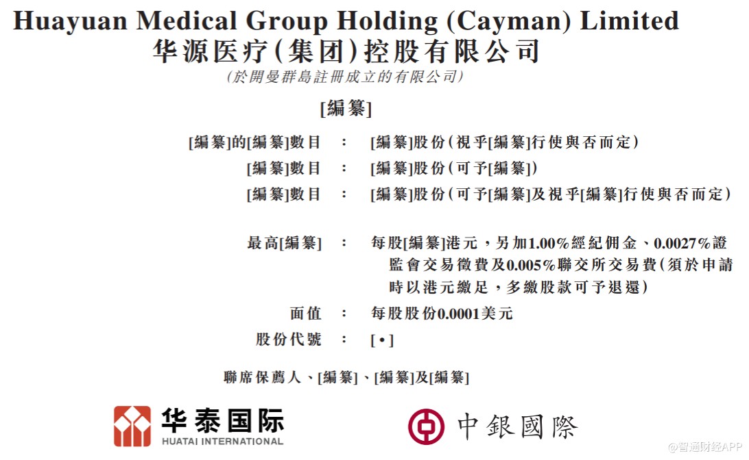 据港交所7月21日披露,华源医疗(集团)控股有限公司向港交所主板提交上市申请,华泰国际及中银国际为联席保荐人。
