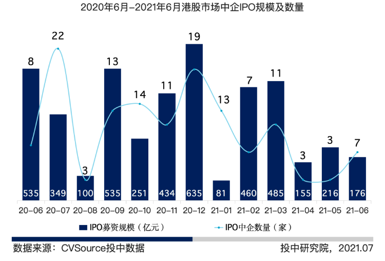 2021上半年,中企港股IPO主要集中在2月和3月,受多个如内地部分行业受到政府加强监督等因素,二季度新股发行较为缓慢,但预计影响短暂。综合来看,中企港股市场现复苏迹象,预计下半年港股IPO市场会有所好转。