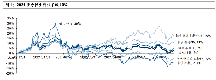 截至7月21日收市,今年以来恒生科技指数累计下跌超过10%,大幅跑输了恒生指数、恒生港股通指数、本地股指数(香港35)以及生物科技指数等。