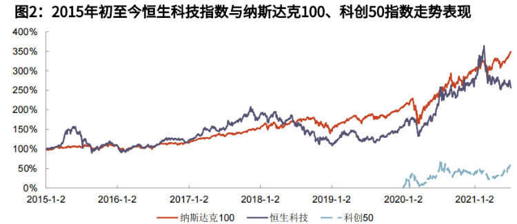 而与此同时,与其他市场主流科技指数比较,恒生科技指数表现也是大幅落后的。