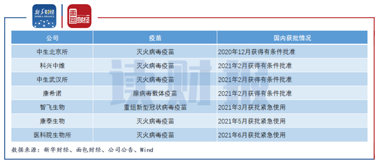图2:截至7月16日国内7款新冠疫苗获批紧急使用或上市