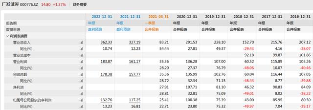 2020年,广发证券归母净利润突破百亿,实现100.38亿元,同比增长23.80%。