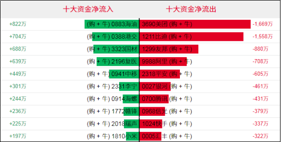 好仓(认购证及牛证)方面,周四海油、港交相关好仓单日分别录得约822万、704万港元资金净流入;美团、比迪相关好仓单日分别录得约1669万、1558万港元资金净流出。