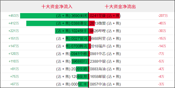 淡仓(认沽证及熊证)方面,周四美团、港交相关淡仓单日分别录得约453万、412万港元资金净流入;里康相关淡仓单日录得约207万港元资金净流出。