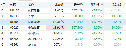 7月23日消息,体育用品股集体暴跌,特步国际跌11%,李宁跌11%,安踏体育跌超5%。体育用品股暴跌背后,有一方面今年以来股价纷纷大涨,另一方面瑞信称6、7月份国产体育用品品牌的销售优势已见消失。