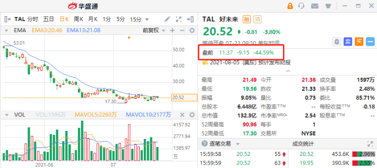 华盛资讯7月23日讯,中概教育股美股盘前重挫,截至发稿,好未来跌超44%,新东方跌超40%,高途跌超20%。