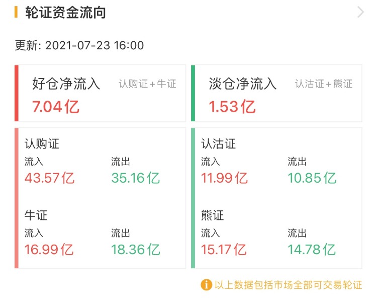 其中,窝轮总成交104.25亿港元,牛熊证总成交69.66亿港元。