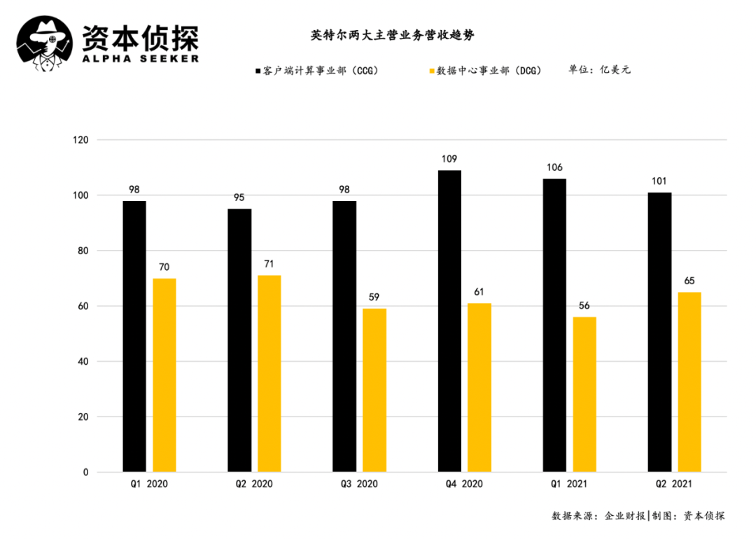 两大主营业务,客户端计算事业部(CCG)和数据中心事业部(DCG)依旧占英特尔总营收近90%份额。