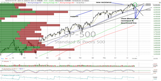 2)标普500指数、道琼斯指数、纳斯达克指数、400中型股指数和价值线算术指数均收于阻力位上方。