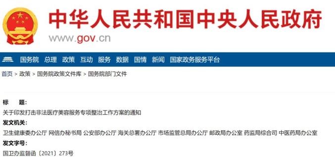 国家卫生健康委、市场监管总局等八部委联合印发了《打击非法医疗美容服务专项整治工作方案》,方案内容显示,多部门将于6月到12月联合开展打击非法医疗美容服务专项整治工作。