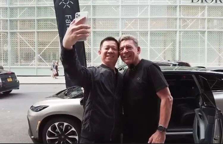 贾跃亭与FF全球CEO毕福康(图片来源:FF上市全球直播)