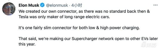 近日,马斯克在Twitter上回复网友时表示会在今年晚些时候,向其他品牌的电动汽车开放特斯拉超级充电站服务,在未来全球的特斯拉超级充电桩将都会面向非特斯拉车辆开放。