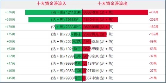 好仓(认购证及牛证)方面,上周五快手、美团相关好仓单日均录得超千万港元资金净流入部署,比迪相关好仓单日录得约1917万港元资金净流出。