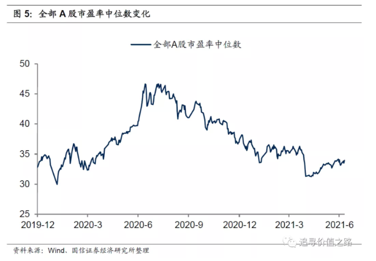 而当前A股整体估值水平并不高。截至2021年7月9日,全部A股市盈率(TTM)中位数为33.9倍(剔除负值),位于自2000年以来26%的历史分位点,明显低于历史中枢水平。根据我们统计的数据,全部A股市盈率(TTM)中位数从2020年8月的46.6倍以来已大幅回落。