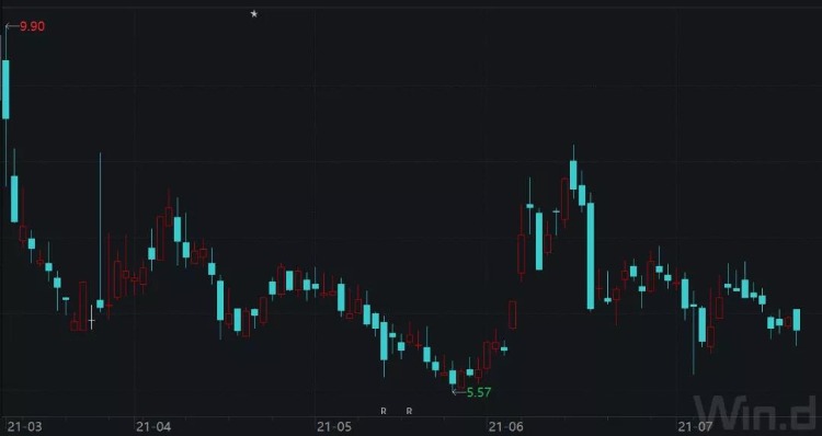 在6月中旬后,又迎来了震荡下跌,截止7月21日收盘,下跌至6.45美元/ADS,跌幅超过35%。