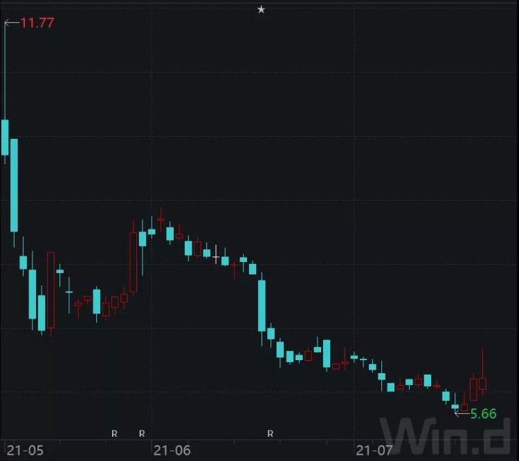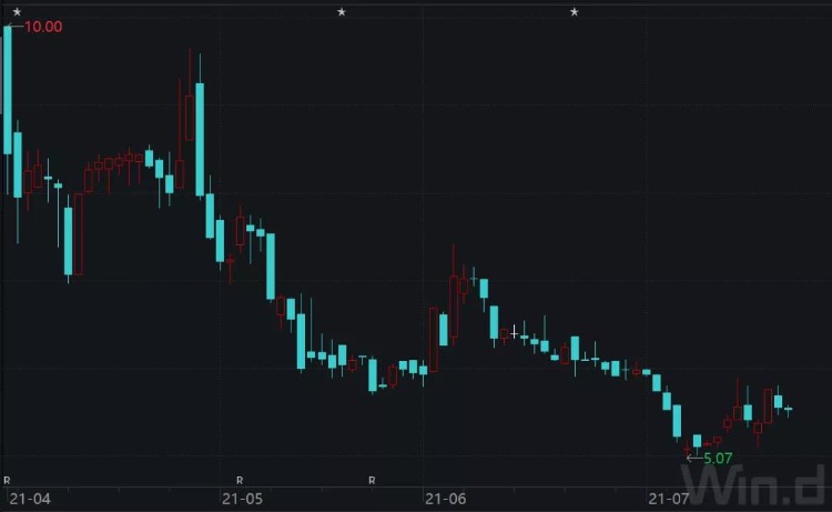 首日即跌破发行价,在接下来4天跌幅更是超过28 %,在5月中旬至6月初的短暂调整后,继续下跌,截止7月21日收盘,股价6.21美元/ADS,跌幅超过48%。