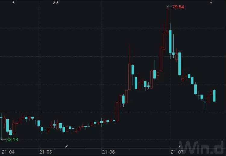 首日跌破发行价后,图森未来经过小幅调整,一路高歌猛进, 直至6月30日,股价涨至最高点79.839美元/股,在此之后尽管有缓慢下行之势,但股价依旧坚挺,截止7月21日,股价收盘在49.43美元/股,涨幅超过23%。