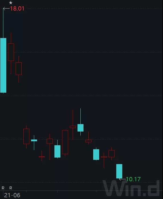 短暂震荡后持续下跌,最后收盘在9.66美元/ADS,首日大跌25.7%,真可谓是出师不利。