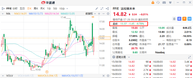 美股新能源汽车板块盘前齐跌,法拉第未来跌超9%,小鹏汽车跌7.3%