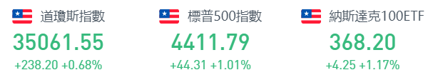 上周五收盘,道琼斯指数上涨238.20点,涨幅0.68%,报35061.55点;标普500指数上涨44.31点,涨幅1.01%,报4411.79点;纳斯达克综合指数上涨152.39点,涨幅1.04%,报14836.99点。三大股指周五(7月23日)盘中再创历史新高。周五美股成交额冠军Facebook公司收高5.3%,创历史新高,成交123.5亿美元,市值史上首次突破1万亿美元,达到10485亿美元。Facebook将于下周四公布2021年第二季度业绩报告。
