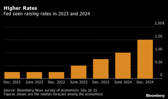 据对经济学家的调查,预计美联储明年将开始缩减资产购买计划,重点在抵押贷款支持证券(MBS);预计该央行在一直到2024年底的时间里比以前认为的更快速度升息。