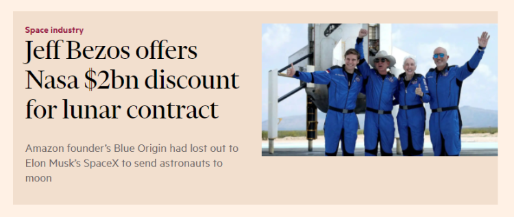 贝索斯提出向NASA支付20亿美元以换取月球着陆器合同