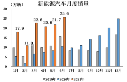 作为全球最大的新能源汽车市场,我国在今年1-6月新能源车产销分别完成121.5万辆和120.6万辆,同比均暴增200%,半年时间达到2019年全年水平。