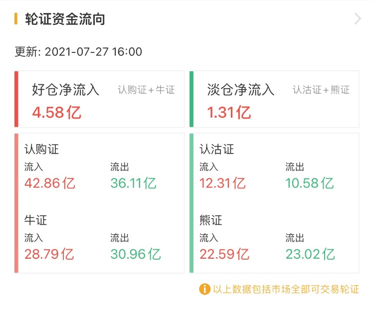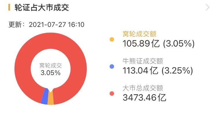 其中,窝轮总成交105.89亿港元,牛熊证总成交113.04亿港元。