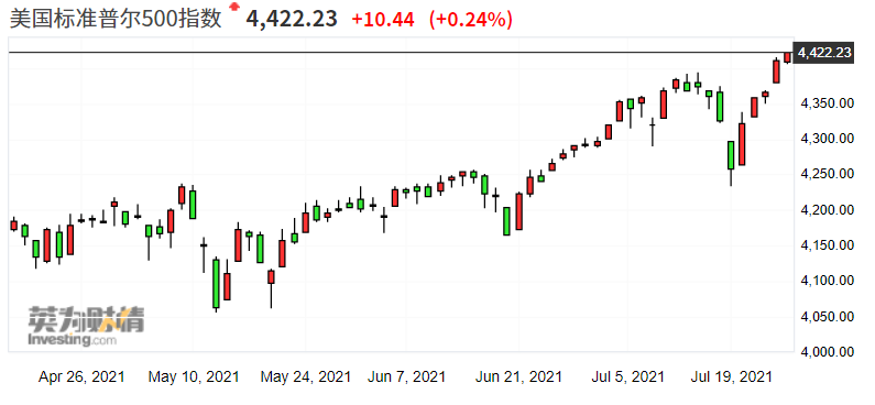 标普500指数周一继续创出新高,收盘涨0.24%,报4422.30点;纳斯达克指数收涨0.03%,报14840.71点。