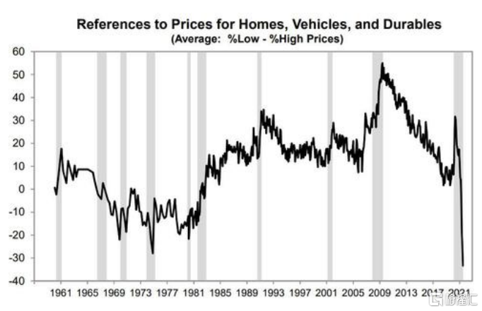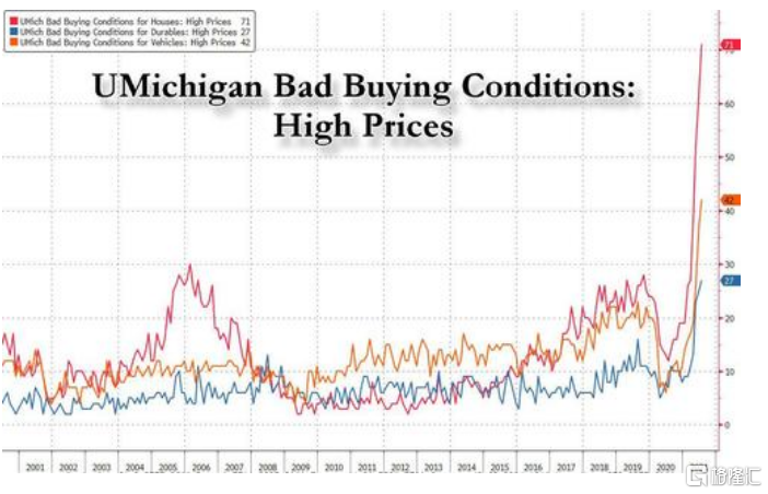 但是,我们需要看到消费者抑制了需求,根据情绪调查显示,由于价格飙升,美国消费者在超前消费方面,从房屋到耐用品和汽车的任何商品都显得犹豫不决。