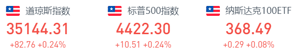 周一美股收盘,道琼斯指数上涨0.24%,报35144.31点;标普500指数涨0.24%,报4422.30点;纳斯达克综合指数上涨0.03%,报14840.71点。道琼斯指数和标普500指数收盘再创历史新高,纳斯达克指数盘中刷新历史新高。周一美股成交额冠军为特斯拉,该股收高2.2%,成交154.4亿美元。特斯拉周一盘后公布超预期财报,净利润11.42亿美元,首次超过10亿美元。