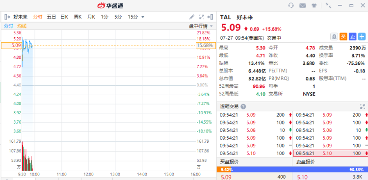 华盛资讯7月27日消息,早盘教育股走强,截止发稿,好未来(TAL)涨超15%,新东方(EDU)涨超10%,高途(GOTU)涨超8%。